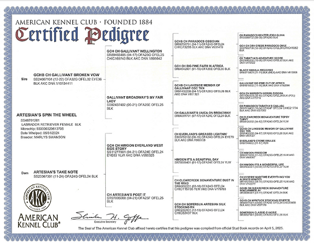 Hips TBD, Elbows TBD, Echo Normal, Genetics are clear by parentage
